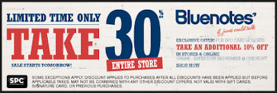 From October 30-31, 2010, get 30% Off everything in-store at Bluenotes. If you're a Signature Card Members, you'll get 50% Off the entire store. If you're not a member, it costs $20 to join the club.