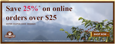 Second Cup recently launched an online store. To help promote it, they are offering all customers 25% Off online orders of $25 or more with the promo code "BEANS25" until November 30, 2010.