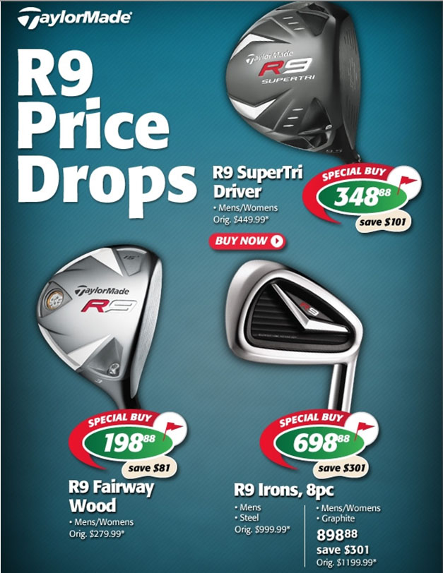 Now that the golfing season is officially over, Golf Town just dropped their price and are clearing out the TaylorMade R9 and Nike Golf VR model of clubs as they prepare for newer models for next season.