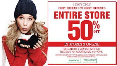Bluenotes has a very hot deal going on right now. From now until Sunday, December 5, 2010, get 50% Off the entire store! The sale is available in-store and online. If you're a signature card member, you'll receive an additional 10% Off!