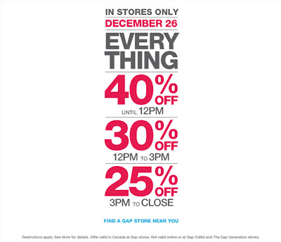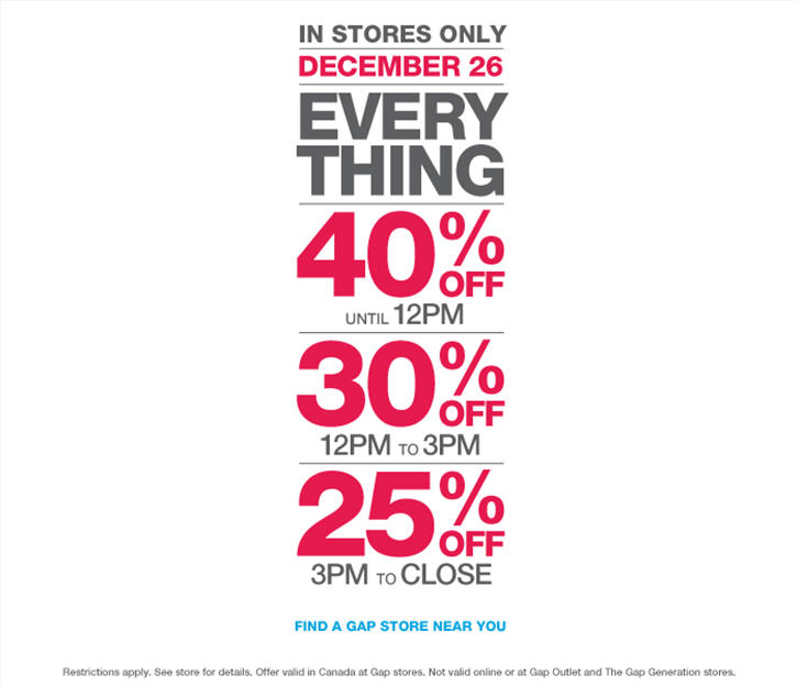 Gap Canada: Save 25-40% Off Everything Boxing Day Sale In-Store (Dec 26 Only)