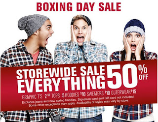 Bluenotes has a sweet storewide 50% Off everything Boxing Day Sale. It is a 2 day only sale from December 26- 27,2010. The sale excludes jeans and new spring hoodies.