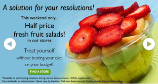 This weekend only (January 8-9, 2011), you can get 50% Off a fresh Fruit Salad when you drop by you local Edible Arrangements store. This is an in-store only promotion at participating Edible Arrangement stores while supplies last. If you plan on taking advantage of this deal, you should call your local store to make sure if they are offering this promotion and have any left or not. Based on my past experience with them, they tend to sellout of out their promo deals very quickly.