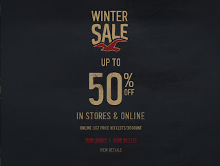 For a limited time, both Hollister and Abercrombie & Fitch currently have Save Up to 50% Sales in-stores and online. The online list price reflects the discount.