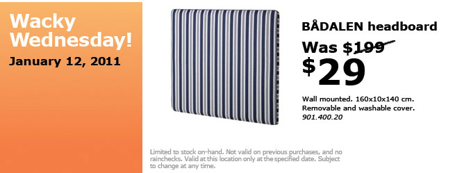 IKEA features a unique sale in each city every Wednesday. They call it their “Wacky Wednesday” huge savings deal.