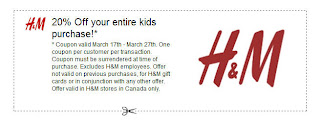 Take 20% off, at H&M, on your entire kids purchase from now until March 27, 2011. Offer valid in Canadian stores only. Other restrictions apply.
