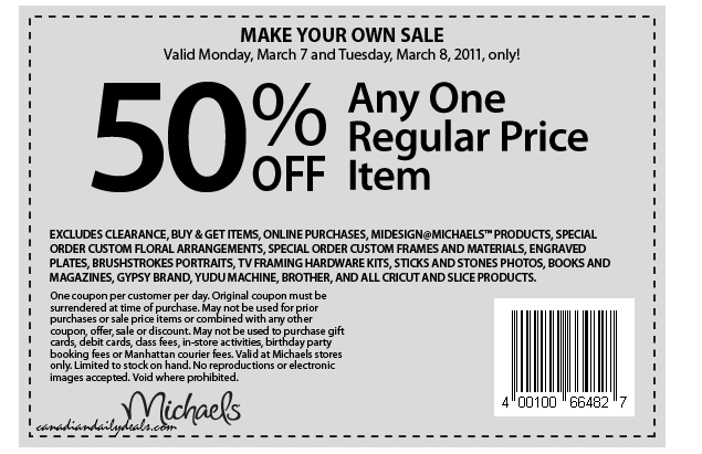Michaels: 50% Off Any One Regular Priced Item Coupon (Mar 7-8)