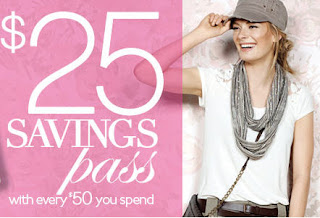 From now until April 13, 2011, for every $50 you spend at Smart Set receive a $25 Savings Pass. That pass can then be used on purchases of $50 or more (before taxes) from May 1-23, 2011. While quantities last, some restrictions apply. Take advantage of a great offer for affordable clothing while it lasts.