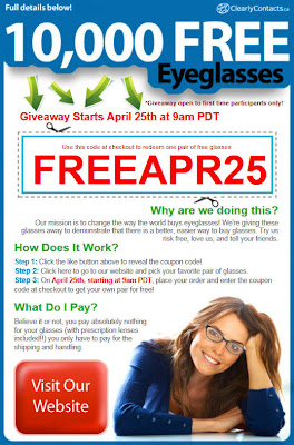HOT DEAL: Clearly Contacts - Giving away 10,000 pair of FREE Eyeglasses (April 25)