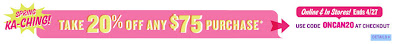 Shop online and in-store at Old Navy and receive 20% off your purchase of $75 or more. When shopping online use the promo code ONCAN20 at checkout to receive the discount. This offer ends April 27, 2011.