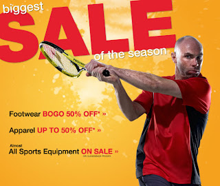 SportChek is having their Biggest Sale of the Season on footwear, athletic apparel and sports equipment, until June 27, 2011. When you buy one men's or women's footwear, you can get 50% off on a second pair. Plus, get up to 50% off on men's, women's and junior athletic apparel, swimwear and boardshorts.