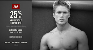 Abercrombie & Fitch has a sale where you can save 25% off your entire purchase (excludes flagship exclusives and redlines). This sale is valid in-stores and online and goes until Wednesday, October 12, 2011.