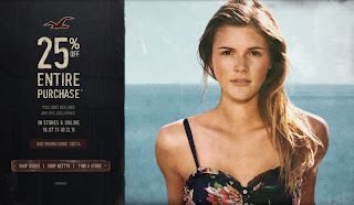 Hollister has a sale where you can save 25% off your entire purchase (excludes flagship exclusives and redlines). This sale is valid in-stores and online and goes until Wednesday, October 12, 2011.