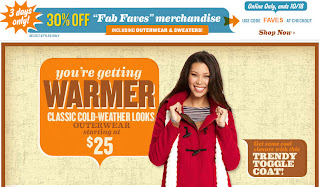 There`s still 2 more days (ends October 18, 2011) to take advantage of Old Navy`s 30% off Fab Faves merchandise offer. This promotion is online only. Simply use the promo code FAVES at checkout to receive the discount. Everyday shipping is free for online orders of $50 or more.