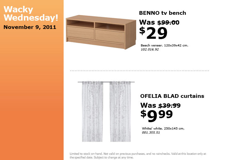 IKEA features a unique sale in each city every Wednesday. They call it their “Wacky Wednesday” huge savings deal.