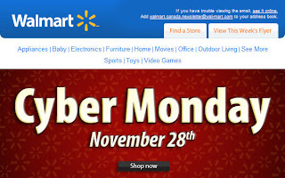 Walmart’s Cyber Monday sale has a bunch of great online exclusive items that is available for purchase on Walmart.ca only. This is a 1-day only online sale on Monday, November 28, 2011.