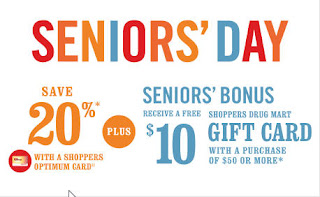 Shoppers Drug Mart: Seniors' Day 20% Off Plus $10 Gift Card With Minimum $50 Purchase (Mar 31)