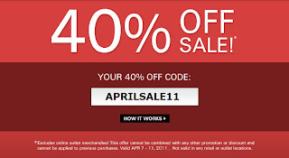 From now until April 11, 2011, receive 40% off your purchase when you shop online at Esprit. Simply entire the promo code "APRILSALE11" at checkout to get the discount. Offer valid online only and excludes online outlet merchandise. Some additional conditions apply.