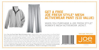 Joe Fresh Style: Printable Coupon for a Free Activewear Pant With Purchase of Women’s Activewear Jacket (Until Apr 22)