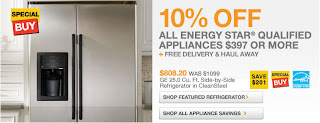 For a limited time, visit The Home Depot and get 10% off energy Star appliances. Plus get free delivery and haul away service.