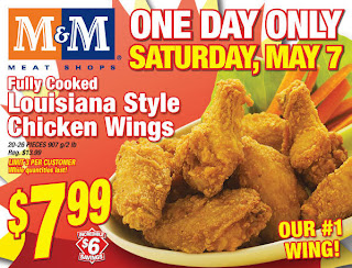 Today only (Saturday, May 7, 2011), enjoy some fully cooked Louisiana Style chicken wings for dinner for only $7.99 from M&M Meat Shops. This offer is regularly priced at $13.99 (Save $6). This is a 1-day only sale and there is a limit of 3 per customer and while quantities last.