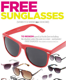 For a limited time, Bluenotes has an exclusive online offer. When you spend $50 or more on your online purchase, you get a FREE pair of sunglasses. You'll be able to choose the pair that you want from a variety of styles.