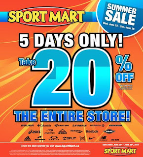 Until June 26, 2011. you can save 20% off the entire Sport Mart store. No coupon is required. The offer cannot be combined with other 3rd party coupons. Some additional restrictions apply.