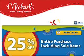 Here's a printable coupon that will get you 25% off your entire purchase including sale items at Michaels. The coupon is valid from July 16 to July 22, 2011 and is valid at all participating Michaels stores in Canada.