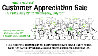Memory Express' Customer Appreciation Sale starts today, Thursday, July 21 and goes until Wednesday July 27, 2011.