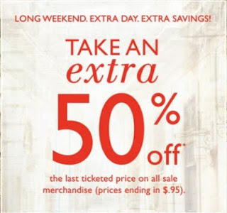 During this long weekend, RW&CO has an in-store only sale where you can take an extra 50% off the last ticketed price on all sale merchandise (prices ending in $0.95). You don't need a coupon or anything to take advantage of this sale as the price will automatically be deducted at the till when you checkout.
