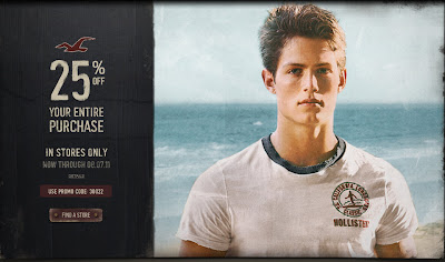 Similar to the Abercrombie & Fitch sale, from now until August 7, 2011, you can save 25% off your entire purchase when you shop at Hollister! This sale is available in-store only at all participating stores in Canada. To take advantage of this sale, simply provide the promo code "30022".