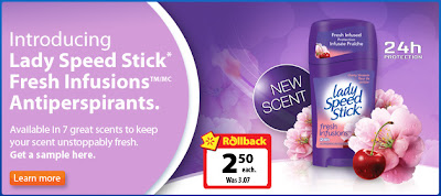 Lady Speed Stick* Fresh InfusionsTM/MC package includes: