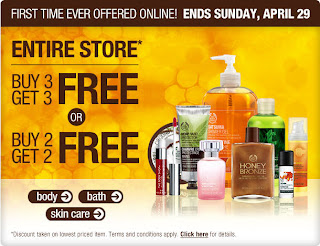 The Body Shop: Buy 3 Get 3 Free, or Buy 2 Get 2 Free Sale (April 29)