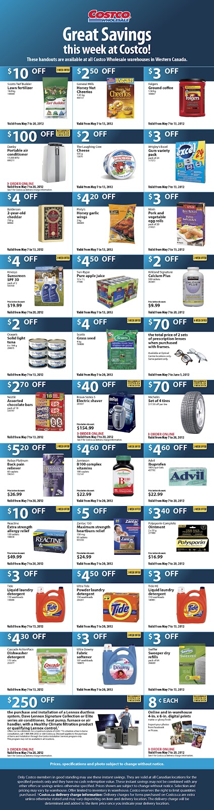 Here is Costco’s latest weekly instant savings coupons. The coupons are valid from May 7th to May 13th, 2012. These savings and handouts are available at all Costco Wholesale warehouse locations in Western Canada. You don’t need to print these coupons because they will hand them out when you enter the store. Only Costco members in good standing may use these instant savings.