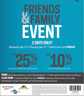 Sport Chek’s popular Friends & Family Event is back! It’s a 2-day only sale from Wednesday, May 16 to Thursday, May 17, 2012.
