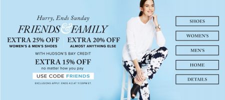 Hudson’s Bay: Friends & Family - Up to an Extra 25% Off Promo Code (Mar 29 - Apr 2)