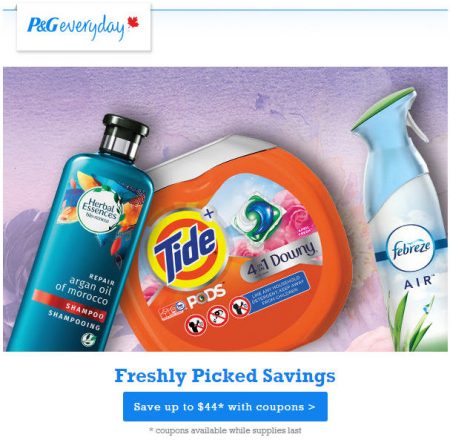Choose from up to $44 in coupon savings from their participating Proctor & Gamble family of brands.