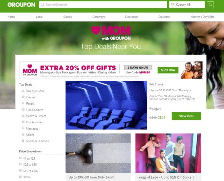 Groupon.com is offering a 20% off promo code. Find great gift ideas for mom or treat yourself.