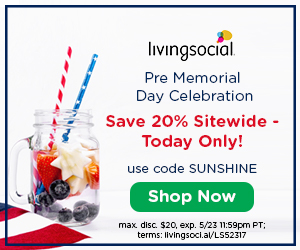 This is a hot deal because most of the deals on LivingSocial is already discounted 50-95% off! You’ll find lots of great deals with the extra 20% off (sale on sale)!