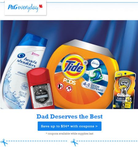Choose from up to $54 in coupon savings from their participating Proctor & Gamble family of brands.