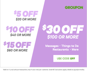 Save up to an incredible extra $30 off on Groupon when you enter the promotion code OFF at checkout: