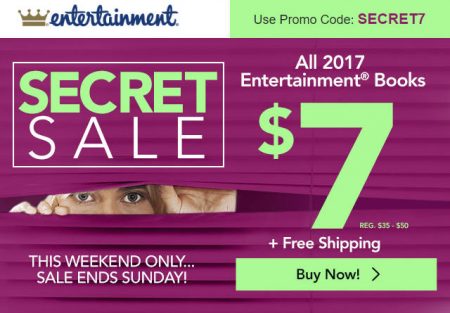 LAST CHANCE: Entertainment Books - Secret Sale - $7 for All 2017 Coupon Books + Free Shipping (Up to 86% Off)