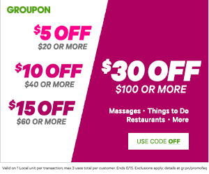 Save up to an incredible extra $30 off on Groupon when you enter the promotion code OFF at checkout: