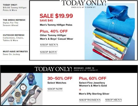 TheBay.com: Today Only - $19.99 for Men’s Tommy Hilfiger Polos, 30-50% Off Select Watches (June 12)