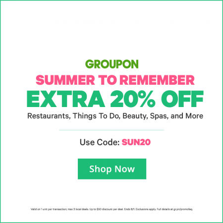 GROUPON: Extra 20% Off Restaurants, Things to Do, Beauty, Spas & More Promo Code (July 31 - Aug 1)