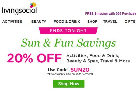LivingSocial.com: Extra 20% Off Food & Drink, Activities, Beauty & Spas, Travel & More Promo Code (Aug 6-7)