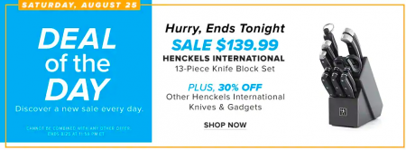 - Deal of the Day: Sale $139.99 for Henckels International 13-Piece Knife Block Set (Reg. $279.99)