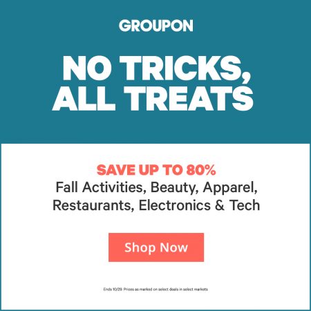 Click here to shop Groupon’s No Tricks, All Treats Sale.
