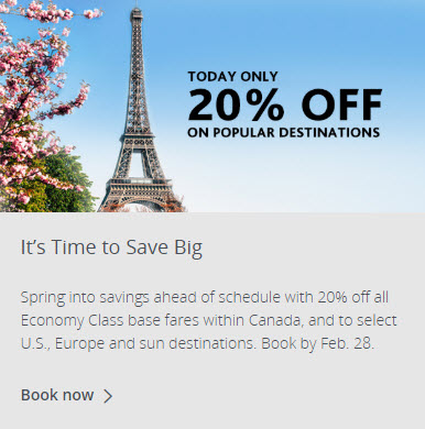 Today only, save an extra 23% off basic and econo base fares to anywhere they fly. Now’s your chance to save big on flights to Canada, the U.S., Mexico, the Caribbean and Europe.
