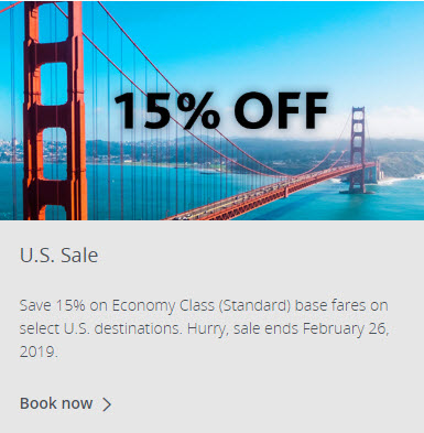 Air Canada: U.S. Seat Sale - 15% Off Promotion Code (Book by Feb 26)